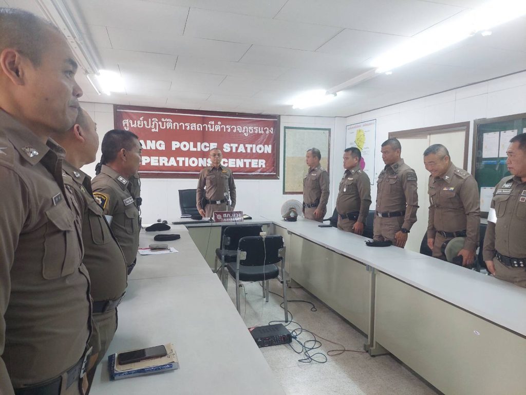 สภ.แวง ประชุมประจำเดือน เมษายน 2568 3 เมษายน 2568 โดย admwaeng / ข่าวภารกิจผู้บังคับบัญชา,กิจกรรมภายใน ผู้บังคับบัญชา,ข่าวประชาสัมพันธ์,ข่าวกิจกรรม,ข่าวภารกิจผู้บังคับบัญชา,งานอำนวยการ,ผลการปฏิบัติราชการ * วิสัยทัศน์* ผบก.ภ.จว.สกลนคร“เป็นตำรวจมืออาชีพบังคับใช้กฎหมายอย่างเป็นธรรมสร้างความเชื่อมั่นแก่ประชาชน”——————– สภ.แวงเรียนผู้บังคับบัญชาวันนี้(2 เม.ย..2568) เวลา 08.40 น. พ.ต.อ.วิทยากรณ์ ษมากรวิทิต ผกก.สภ.แวง พร้อมข้าราชการตำรวจใน สังกัด สภ.แวง ประชุมประจำเดือน เมษายน 2568 กำชับการปฏิบัติ การเข้าระงับเหตุคนวิกลจริต การรักษาความความสงบเรียบร้อยช่วงเทศกาลสงกรานต์ ระดมกวาดล้างช่วง 11-17 เมษายน พร้อมกำชับห้ามยุ่งเกี่ยวยาเสพติด การปฏิบัติกับประชาชนต้องระมัดระวัง และข้อสั่งการของผู้บังคับบัญชา Facebook iconFacebookTwitter iconTwitterLINE iconLine