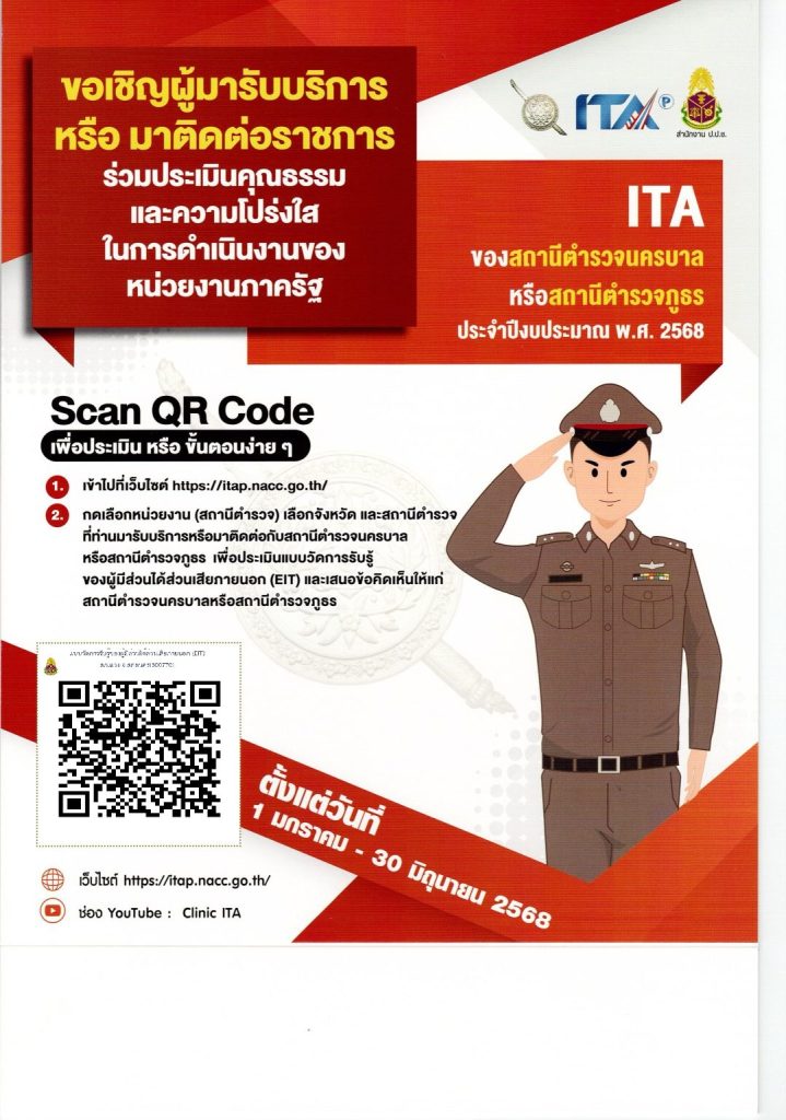 ประชาสัมพันธ์ข้อมูลการประเมิคุณธรรมและความโปร่งใสในการดำเนินงาน ของหน่วยงานภาครัฐ (Integrity &Transparency Assessment: ITA) ของสถานีตำรวจภูธรประจำปีงบประมาณ พ.ศ. 2568